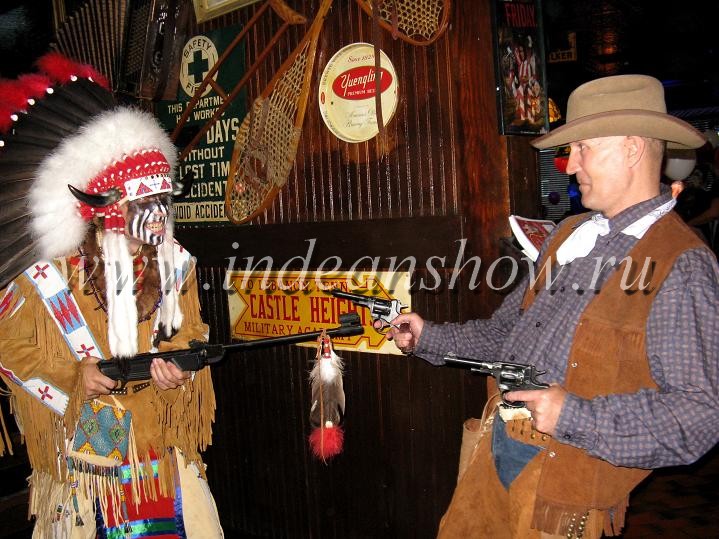 И конечно, что за Дикий Запад без ковбоев, отважных и лихих наездников, извечных врагов коренных обитателей прерий – индейцев. Артисты нашего шоу при изготовлении ковбойских костюмов использовали старинные фотографии и американские первоисточники, ни на дюйм не уклоняясь от исторической действительности.
